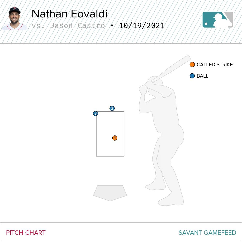 Home-plate umpire Laz Diaz has missed 21 ball-strike calls tonight, according to @ESPNStatsInfo. That is the most of any umpire this postseason. The green dot in the upper RH corner is the Eovaldi curveball that would've ended top of the ninth with the score 2-2.
