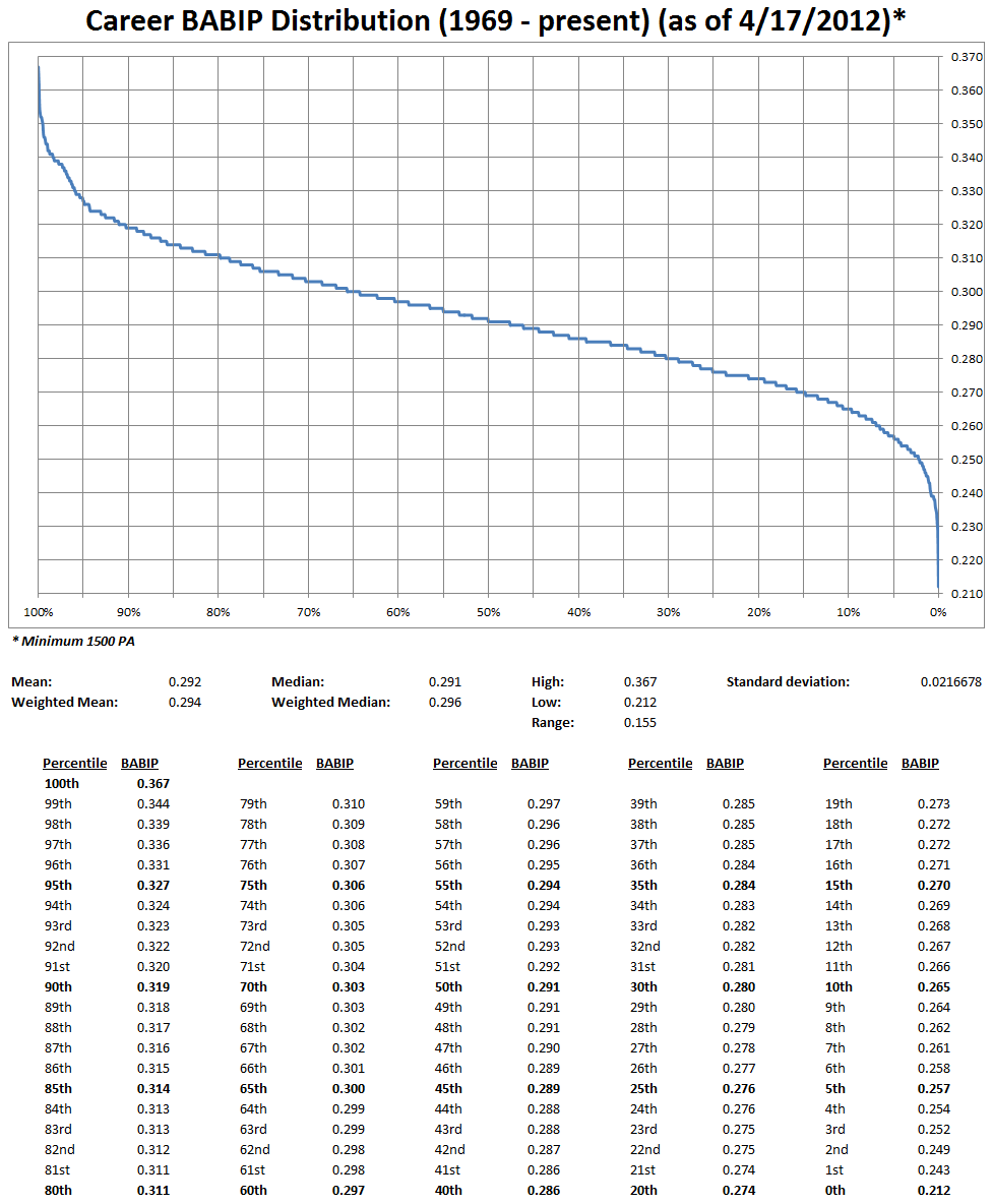 Career BABIP Distribution (1969 - present) (as of 4/17/2012)* * Minimum 1500 PA Data source:...