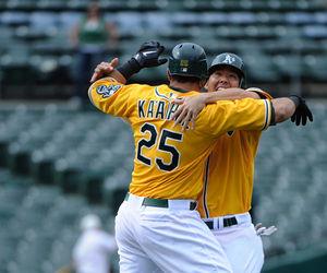 Oakland first baseman Kila Ka'aihue has long been a sabermetric darling. A 15th-round draft pick a decade ago, he first showed up on the radar in 2005. At age 21, he walked 97 times while striking out 97 times and slugging 20 homers in High-A (Cal League/High Desert caveats applying on that last number). But he truly exploded onto the scene in a 2008 season that saw him post absurd numbers between Double-A and Triple-A: a 67/104 K/BB, 37 homers, and a .314/.456/.628 triple-slash.