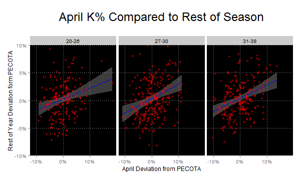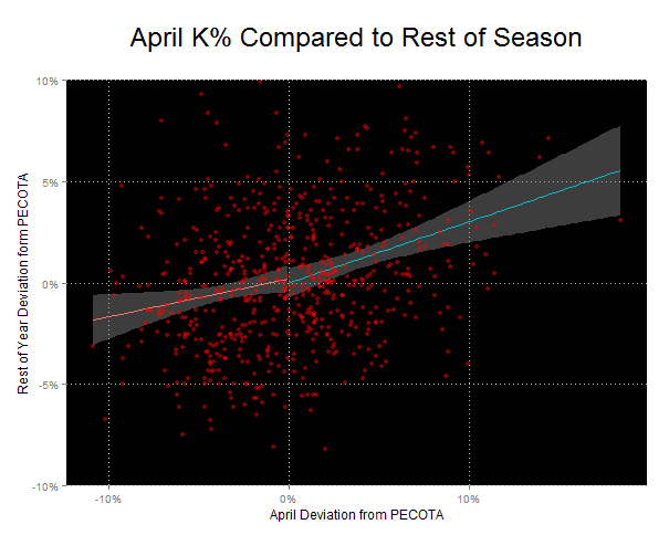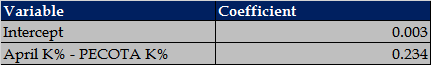 (RoS K% - PECOTA K%) = .236 x (April K% - PECOTA K%)