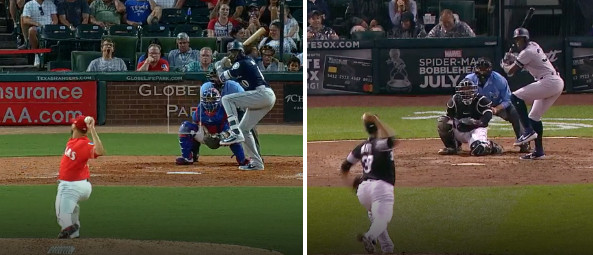 So what if Maybin always had these good batted ball skills in him? Year-to-year, his max exit velocity numbers usually hung around 110 miles per hour, considerably above-average. This prompted the question of Maybin possibly changing something with his swing. After swimming through some video from last season and this season, a difference quickly became apparent.