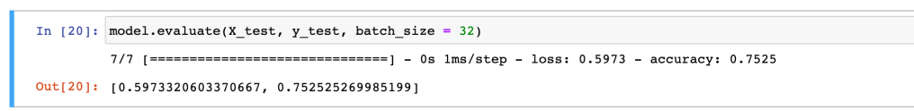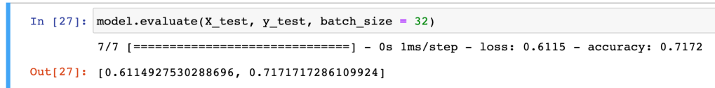 The accuracy increased on both the training set and the test set; we’re now in the ballpark of 0.7 – 0.75 probability of the network making the correct prediction as to whether someone’s wOBA will be above .320 or not. Intuitively this makes sense: wOBA is calculated based on batted ball outcomes (and walks), and so adding a relevant batted ball parameter as a feature – such as exit velocity – should increase the accuracy of any wOBA prediction.