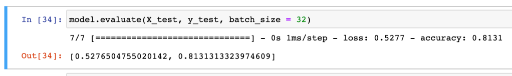 While 70% is not a bad starting point, how much more accurate could the predictions of the network get if I added a feature with some actual batted ball information? For the second scenario, I added a seventh feature – the average normalized exit velocity. Here is the performance on the training set.